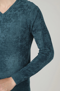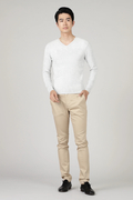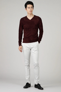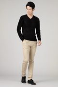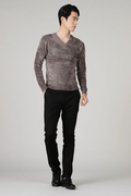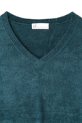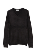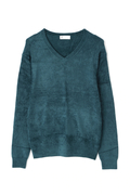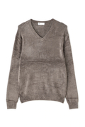 モールヤーンを使用した、Vネックニット。滑らかな肌触りのモール素材のプルオーバー。モールヤーンを12Gで編み立てた、強いストレッチ性のある素材で、厚すぎない適度な生地になっています。すっきりとタイトなラインで、シャープに着られるサイジング。シンプルなVネックデザインです。