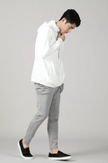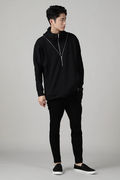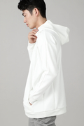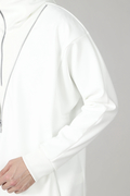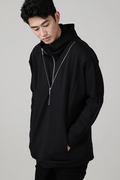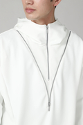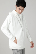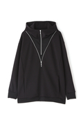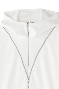 柔らかなダンボールジャージーのデザインプルオーバーフーディ。ふんわりとしたタッチに、オーバーシルエットが着心地の良さも実現。ハイネックタイプのZIPUPデザインで、BODYの飾りZIPもアクセントにしています。随所にはリブも施し、モードな印象度を引き上げています。