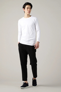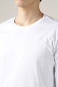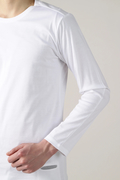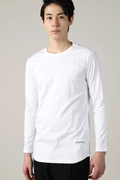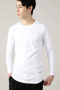 ベーシックなクルーネックデザインながらも、計算された裾のラウンドバランス、肩・肩甲骨周りの動きやすさ・着心地を追求したパターンメイキングとこだわりの1着です。一般的な着丈より長めで、身体に沿うようなシャープな設計にしている為、自転車等の前傾姿勢の時も裾が上がらず着用出来ます。ジャケットのインナーとしてもレイヤードスタイルとして着こなしが可能です。裾に付いたメッシュポケットも遊び心あるデザインでおすすめのポイントです。