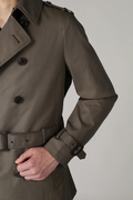 程よい光沢感のあるT/Cシャンブレー生地を使用したWトレンチコートです。すっきりとしたシルエットで、カジュアルスタイルからビジネススタイルまで幅広いシーンで活躍するアイテムです。ライナー部分は、取り外し可能な仕様になっているので、ロングシーズンで活躍します。