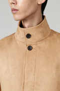 スエード調ダンボールの質感を活かしたシンプルで無駄の無い、適度なカジュアル感を演出出来る飽きのこないスタンドデザインで、ショートコートのニュアンスもある着回しの巾が広いスタンダードな商品です。