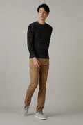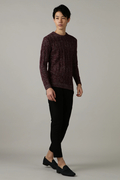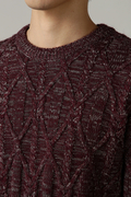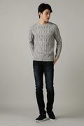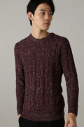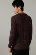 全面ケーブル柄のクルーネックニットです。独特のメランジ見えのケーブル柄は、ブルゾンやコートのインナーとして冬のコーディネートに欠かせないウオーム感あふれるベーシックアイテムです。