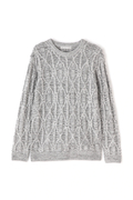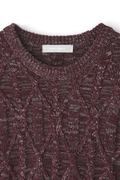 ウール混紡糸と光沢感のあるテープヤーンを撚糸した独特の杢調見えの5ゲージケーブル編ニットです。
