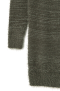 ロング丈でワンピース風のコーディネート可能。光沢のあるフェザーヤーンを使用して、豪華なシャギー感を演出しています。
