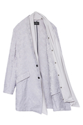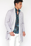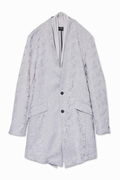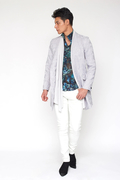 ノーカラーベースの2Bチェスターに、とろみのあるジャージー素材をストール風にドッキング。