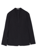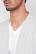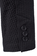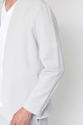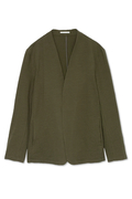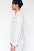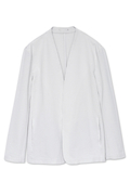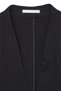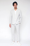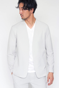 表情感のあるニットサッカー生地を使用したノーカラーカーディガンジャケット。