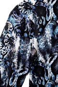 パイソンの模様だけでなくリアルなパイソンそのものをコラージュすることで奥行き感と動きのある柄に描いています。