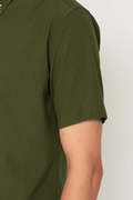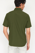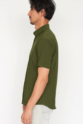 4WAYサッカー素材を使用したショートカラーの釦ダウン半袖袖シャツです。4WAYストレッチの快適な着心地で、スマートな印象を演出します。様々な場面での着回しが出来る商品です。