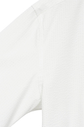 糸の収縮差で細やかなオウトツ感を出した4WAYサッカー素材。身体の動きにフィットする、しなやかな伸縮性とノーアイロンでお手入れ簡単なファブリックが、ストレスフリーなライフスタイルをサポートします。