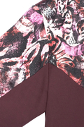 パイソンの模様だけでなくリアルなパイソンそのものをコラージュすることで奥行き感と動きのある柄に描いています。