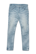 通常のデニムより強い伸縮性があり、タイトなシルエットでもストレスなく着用できます。