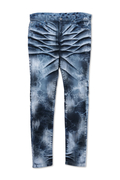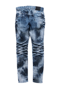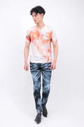タイダイ風のブリーチ加工後、さらにハンドブリーチを行い、全面ムラに吹き付けや白コーティングを施工。