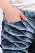 ノイズがかかったような激しさをみせるスキニーデニム。