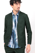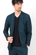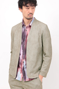 マーブル調プリントの4WAYトリコット素材を使用したノーカラージャケットです。