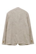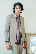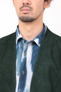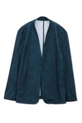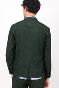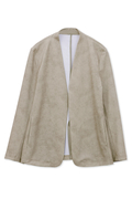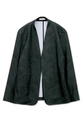 マーブル調プリントの4WAYトリコット素材を使用したノーカラージャケットです。