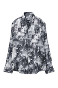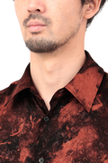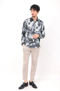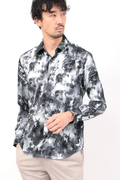 動きと陰影感のあるバラをイメージしたアーティスティックなプリントジャガード生地を使用したレギュラーカラーシャツです。