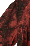 ストレッチ性のある薄手のポリエステルジャガード素材にプリントを施し、柄と柄を重ねることで、奥行きのある立体的な見え方に仕上げています。