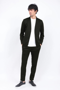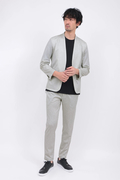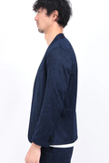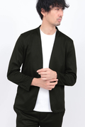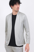 表情感のある別注ジャージ生地を使用したノーカラージャケットです。