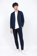 さりげないインパクトのあるジャージ素材を使用し、すっきりとしたシャープなシルエットながら、ストレスフリーな着心地です。