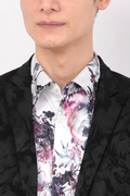 イタリアインポート素材を用いたピークドラペルジャケット。