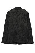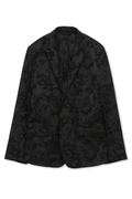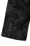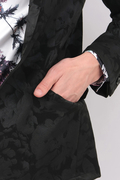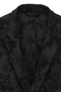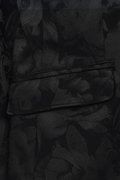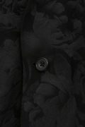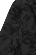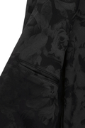 タテヨコ共に黒でありながら異素材の光沢感の違いと、複雑なジャカード組織によって単色でありながらも奥行感と深みのある柄表現となっています。