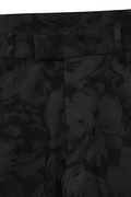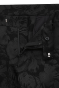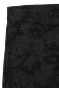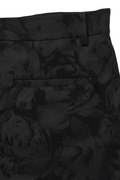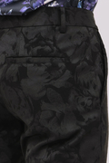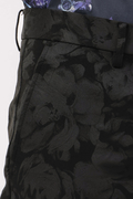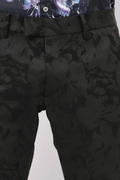 タテヨコ共に黒でありながら異素材の光沢感の違いと、複雑なジャカード組織によって単色でありながらも奥行感と深みのある柄表現となっています。