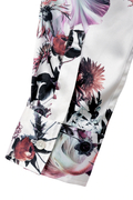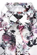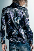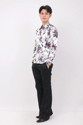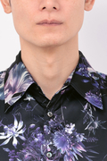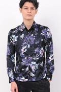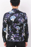 ロイヤルサテン地のなめらかな質感や上質な光沢と相まってラグジュアリーな印象のシャツに仕上がっています。