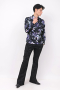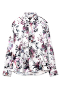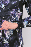 アクアフラワープリントの長袖シャツ。