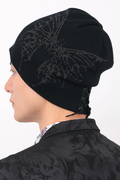 トライバル調のバタフライをジャカードの編み柄に落とし込んだニットキャップ。