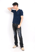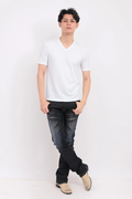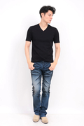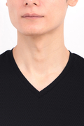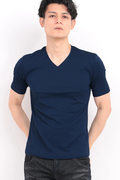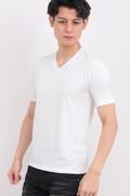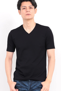 イタリア産インポート素材を使用したVネック半袖カットソー。