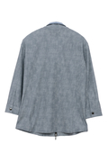 デニム調のプリントを施したトリコットメッシュの7分袖ジップアップシャツブルゾンです。
