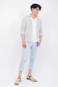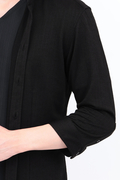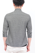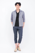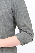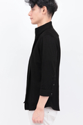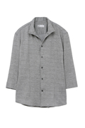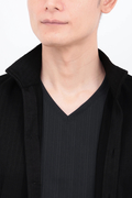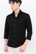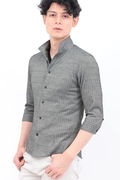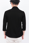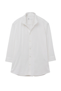 ランダム針抜きテレコジャージーで仕上げた7分袖スタンドカラーシャツ。