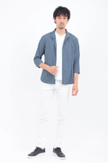 多機能なポリエステルトロピカル生地を使用したショートウイングカラーの7分袖シャツです。