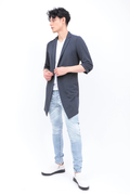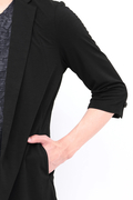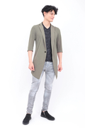 シャープなシルエットに、モードな演出が出来る7分袖のライトチェスター。