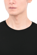 ナイロンとポリウレタン混のジャカードジャージークルーネック。
