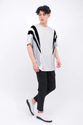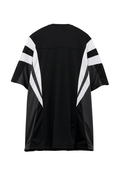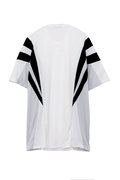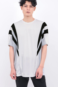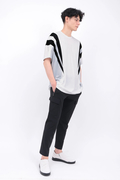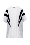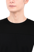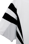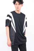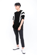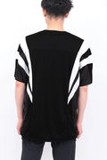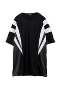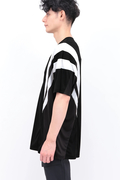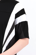 鋭角なカッティングでモード感を演出したバイカラーカットソー。
