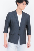 TORNADO MART(トルネードマート) |ZERO by TORNADO MART∴エアトリコットツィードプリント7分袖ジャケット ネイビー