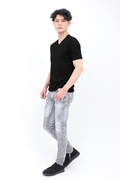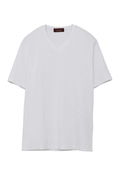 イタリア産インポート素材を使用したVネック半袖カットソー。