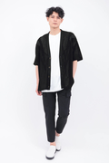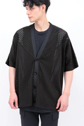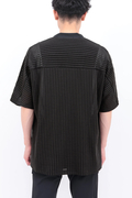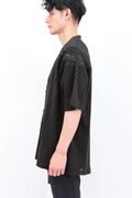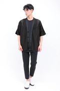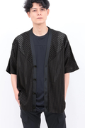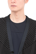 ラッセルメッシュストライプジャージーで作りこんだオーバーシルエットカーディガン。