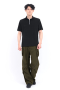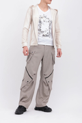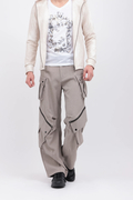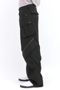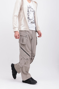 脇と膝に配したカーゴポケットや、ZIPアクセントが目を引く一本です。