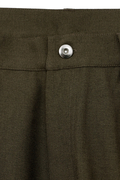 ワイドシルエットに、膝と裾にダーツを施し、カーブを聞かせた絶妙なフォルムを構築。
