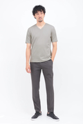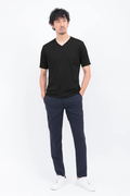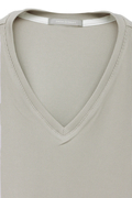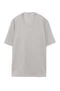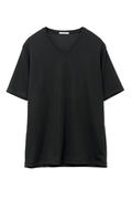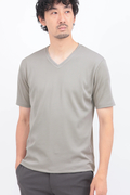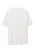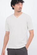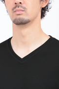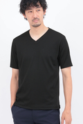 身体に寄り添うタイトなシルエットは通年使いに最適で、計算されたVネックの開きは一枚でも抜けすぎず、洗練された印象をキープ。