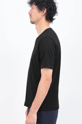 程よい艶を帯びたリブ素材が、シンプルなクルーネックTにもさりげない品を添える。