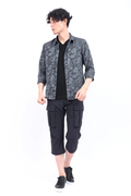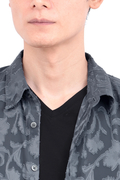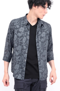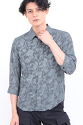 TORNADO MART(トルネードマート) |TORNADO MART∴ボタニカルシフォンカットジャカード7分袖シャツ チャコール