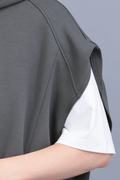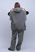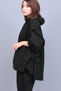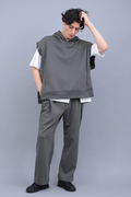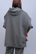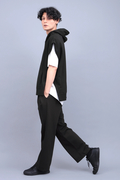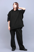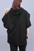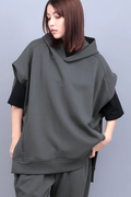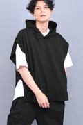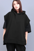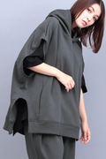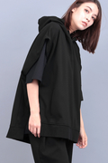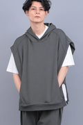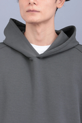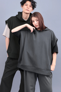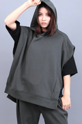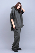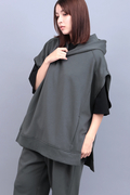 計算されたビッグシルエットフレンチスリーブフーディーは、シンプルながら存在感抜群。