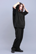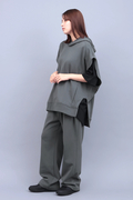 サイドのスリットと裾のカッティングが動きを生み出し、どこから見ても抜け感のあるシルエットに。