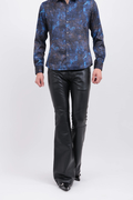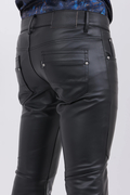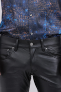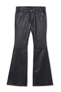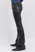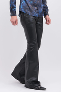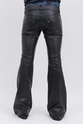 極上のしなやかさを誇るストレッチシープナパを使用し、70年代のアイコンであるベルボトムをモダンに再構築。ナパ特有の艶やかな光沢と、ストレッチ加工によるフィット感が融合し、動きやすさと美しいラインを両立させました。
