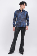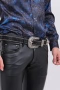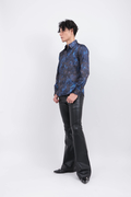 太ももから膝にかけてはタイトにフィットし、裾に向かって緩やかに広がるシルエットが、脚を長く美しく見せながらも圧倒的な存在感を放ちます。ハードでエレガント、そしてどこかアヴァンギャルド。日常を非日常へと昇華させる一本です。
