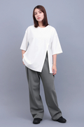 計算されたタック使いと、しなやかに落ちる生地感が魅力のワイドパンツ。