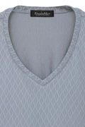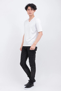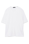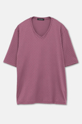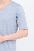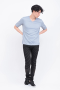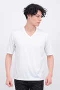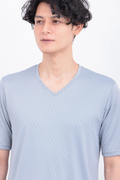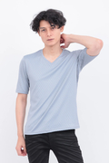 5分袖とVネックのバランスが、シャープで清涼感のある印象をもたらします。
